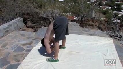 Jesse gets down and upside down and into every other position you could never imagine. Once Jesse is all stretched, he strokes out a load!
