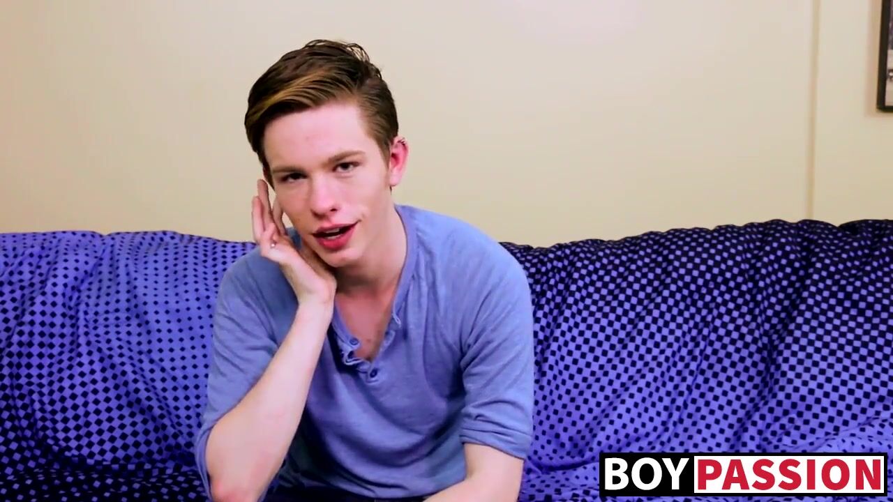 Shy twink is interviewed but it doesn't take long until he's fingering himself and stroking his big cock like a total whore.