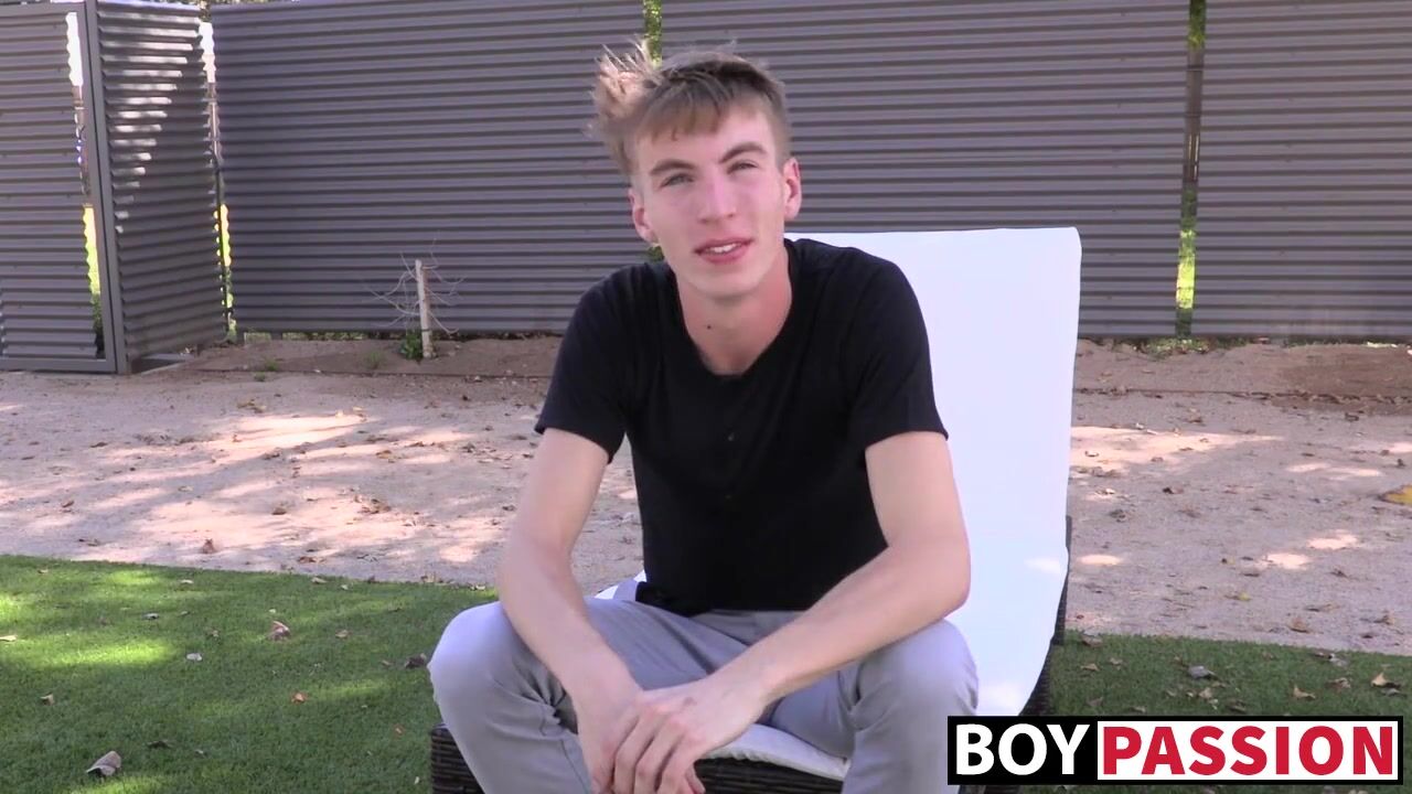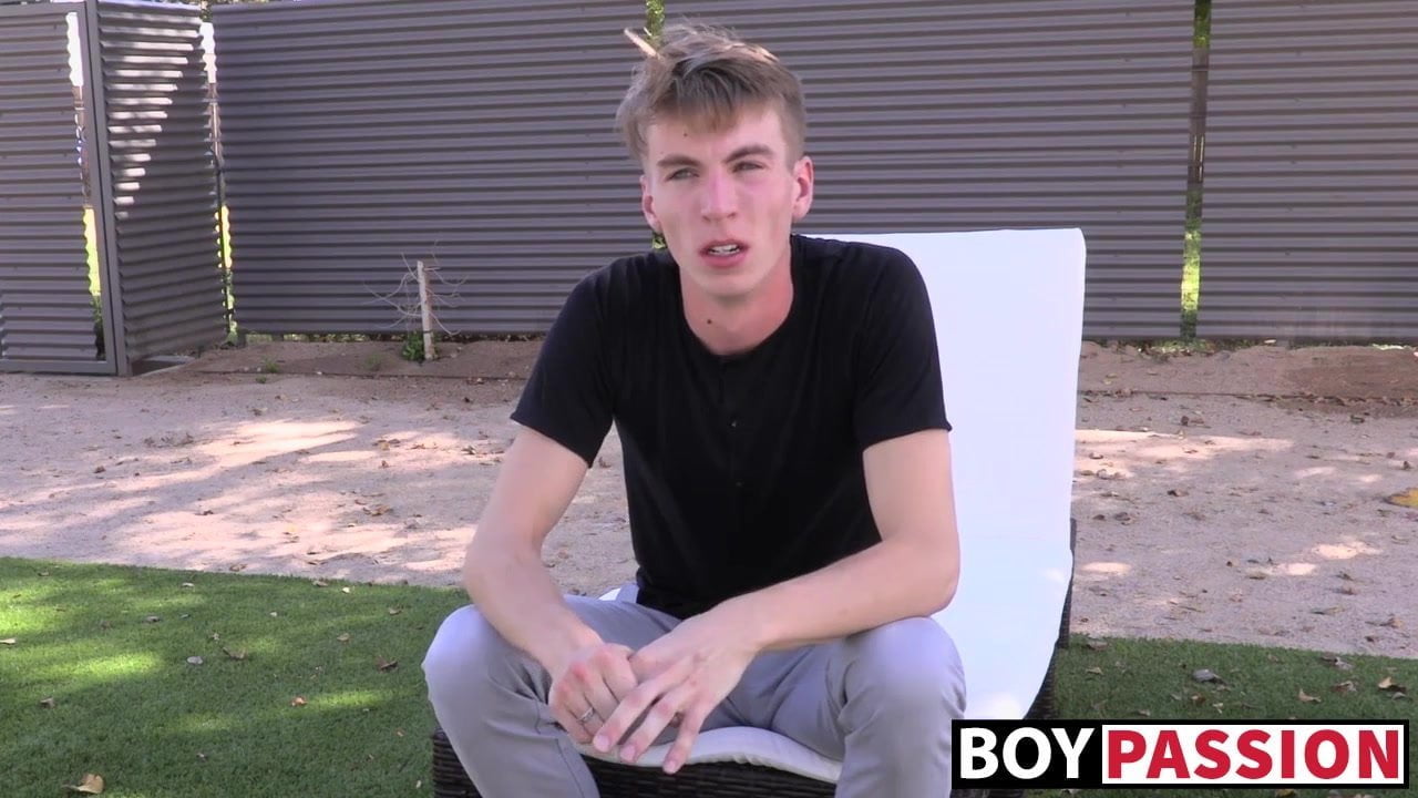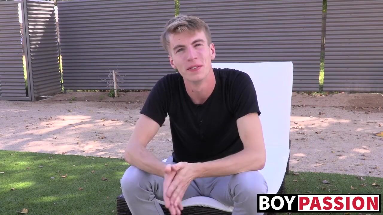 Handsome twink enjoys giving a relaxing interview before taking a shower and pleasing his big penis.