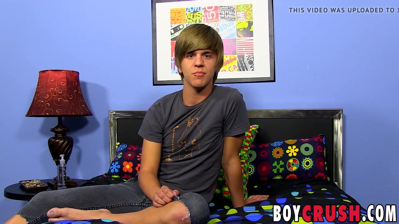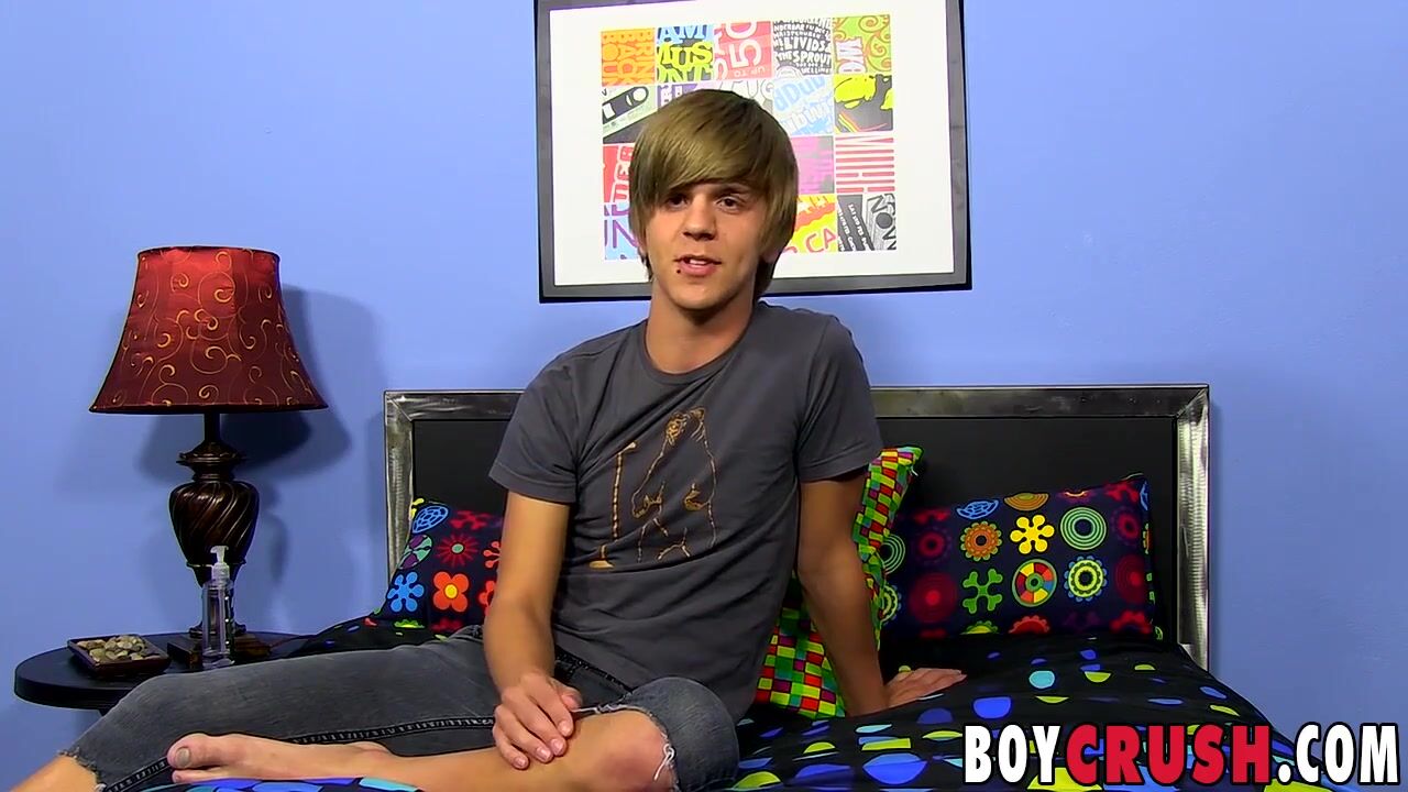 Good looking twinkie strokes his dick after giving interview