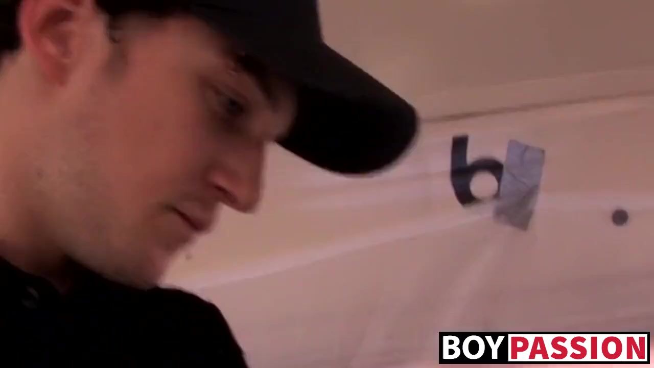 Naughty nerdy twink with glasses Timo Garret jerking off his massive hard dick before licking it and swallowing hot nasty cum.