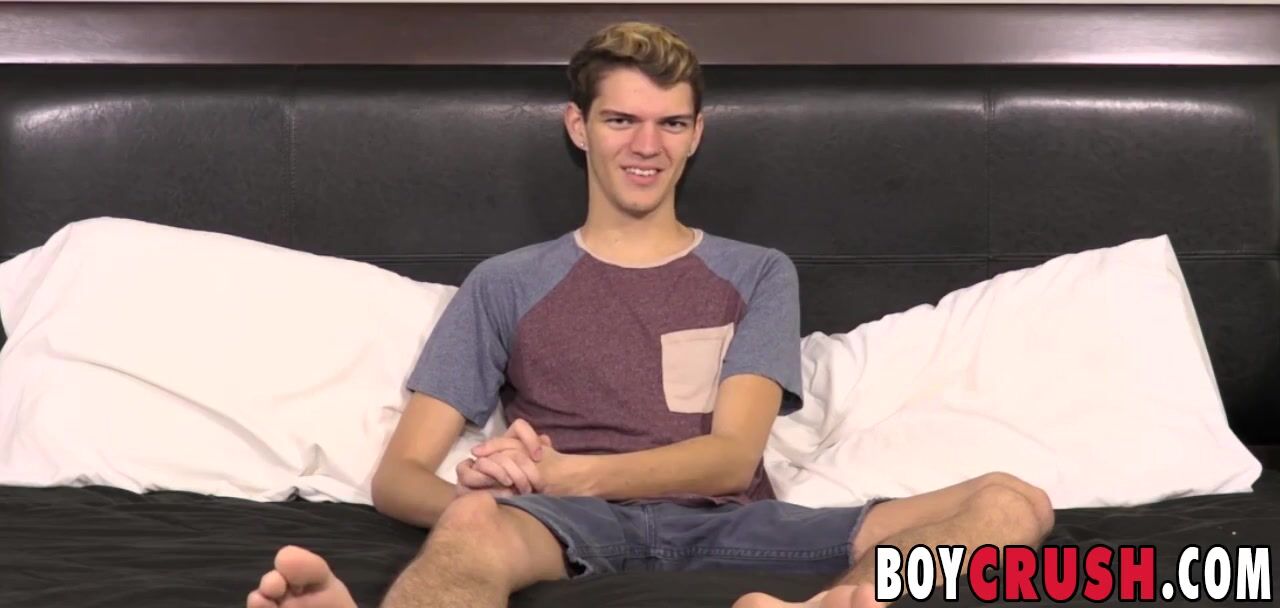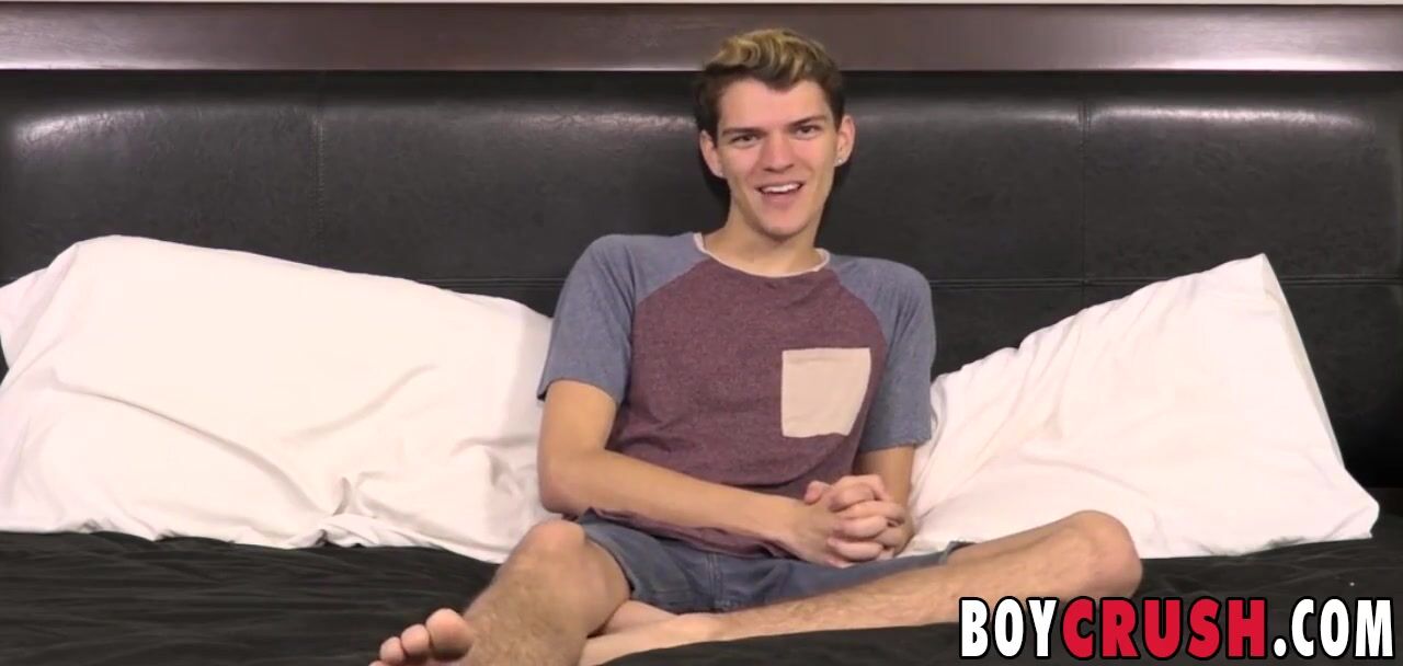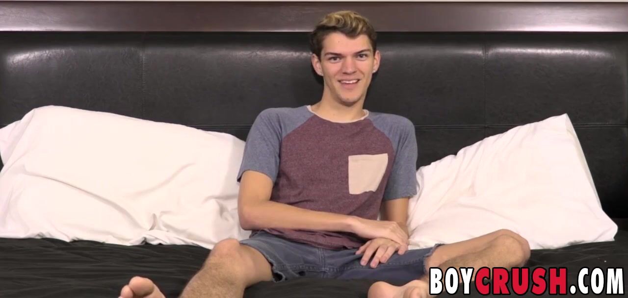 Skinny twink Max Rose jerks off solo during an interview