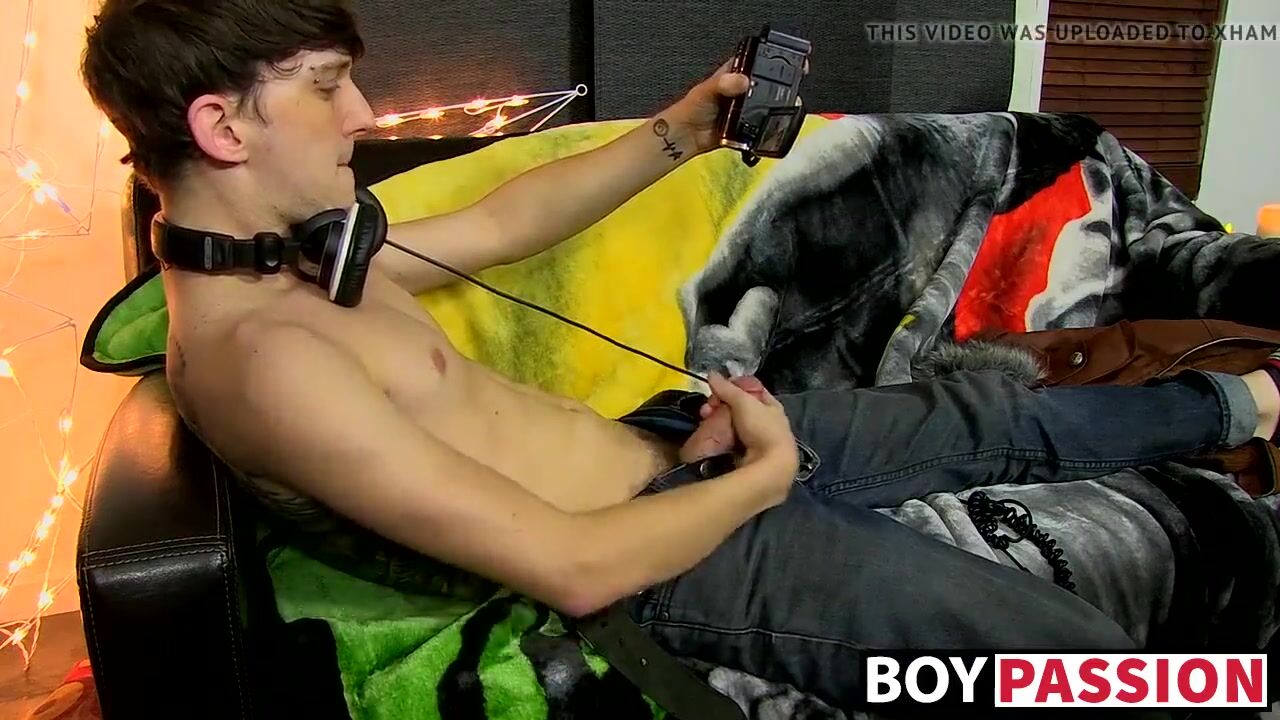 Bored twink plays with his toy and jerks off until he cums. His DJ-ing career is being compromised by his need to stroke his dick until cumming!