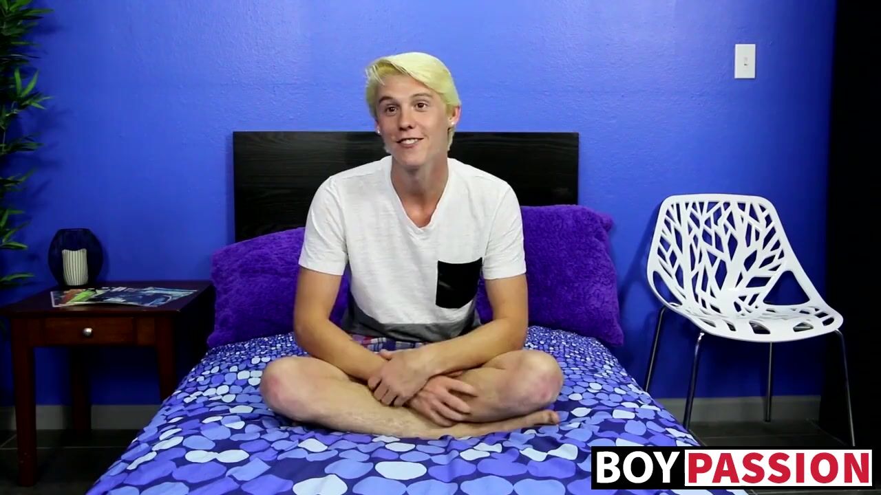 Blondie lays back on the bed after pulling all of his clothes off and starts masturbating as if no one was watching him do it.