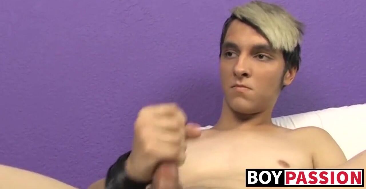 Blonde skinny twink Rany strokes long dick and stuffs dildo