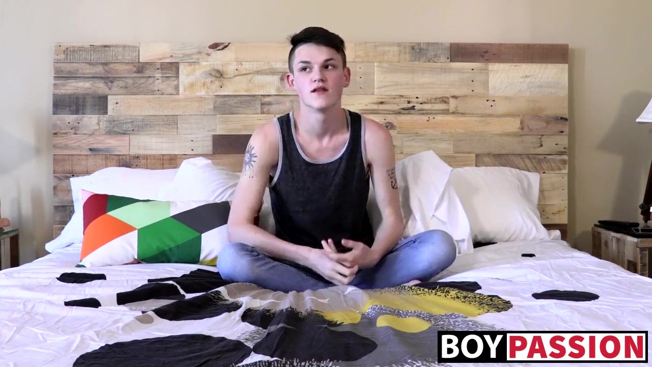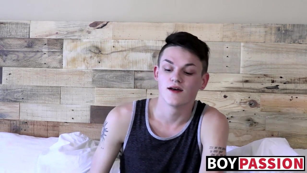 Tattooed gay talks about himself in an interview before riding a dildo jerking off until an orgasm
