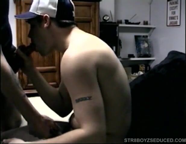 Following a quick shower straight boy Buzz heads to the bedroom where I dive down on his cock quickly bringing it to life. And when he sees my cock sticking up he grabs it and starts sucking it. After