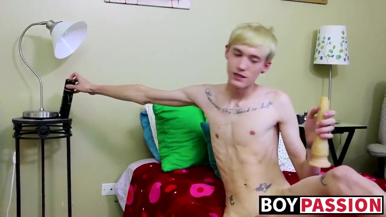 Solo young man stroke his fat dong and pulls on it before spreading his cheeks and a toy inside of his tight butt hole.