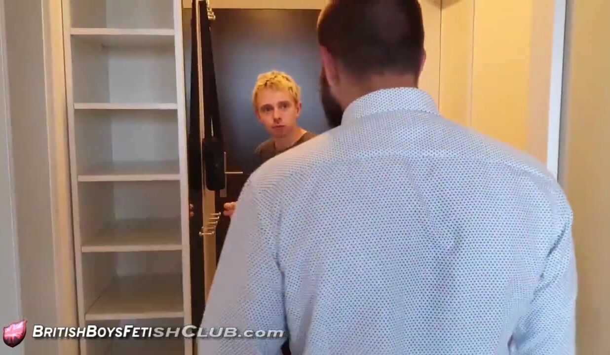 Grabbed and frog-marched into the kitchen, Taavi finds himself getting a well deserved walloping. Lad is very excited when his underwear is pulled down, but Teodor soon spanks the hardness out of him.