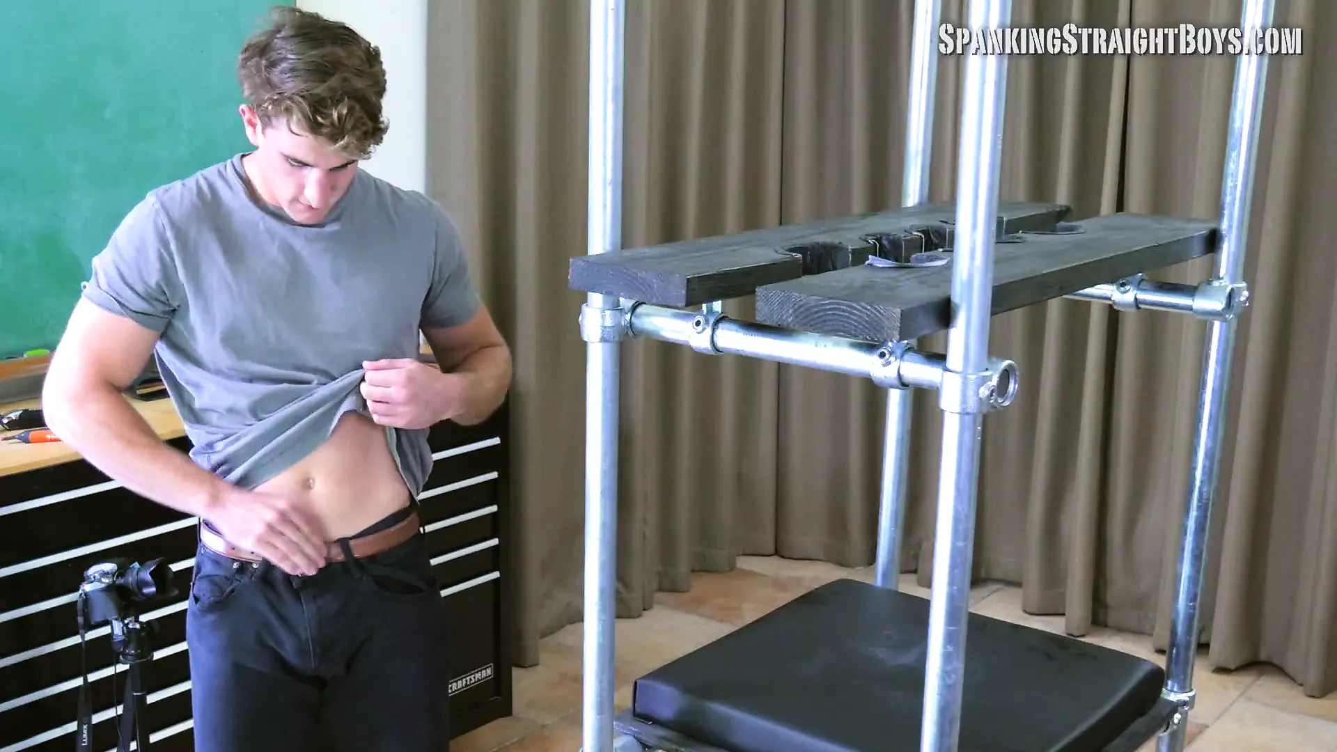 Craig is an Adonis straight boy who finds himself put in a spanking tower and spanked hard by a gay man.