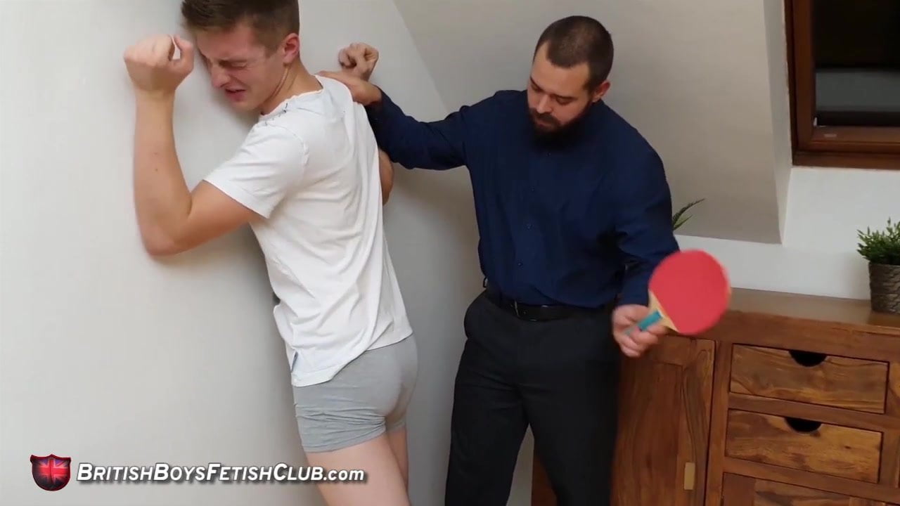 In trouble again, Jonathan comes in wearing only boxers and a Tshirt. He is told to stand with his hands on the wall and present his rear for a paddling.