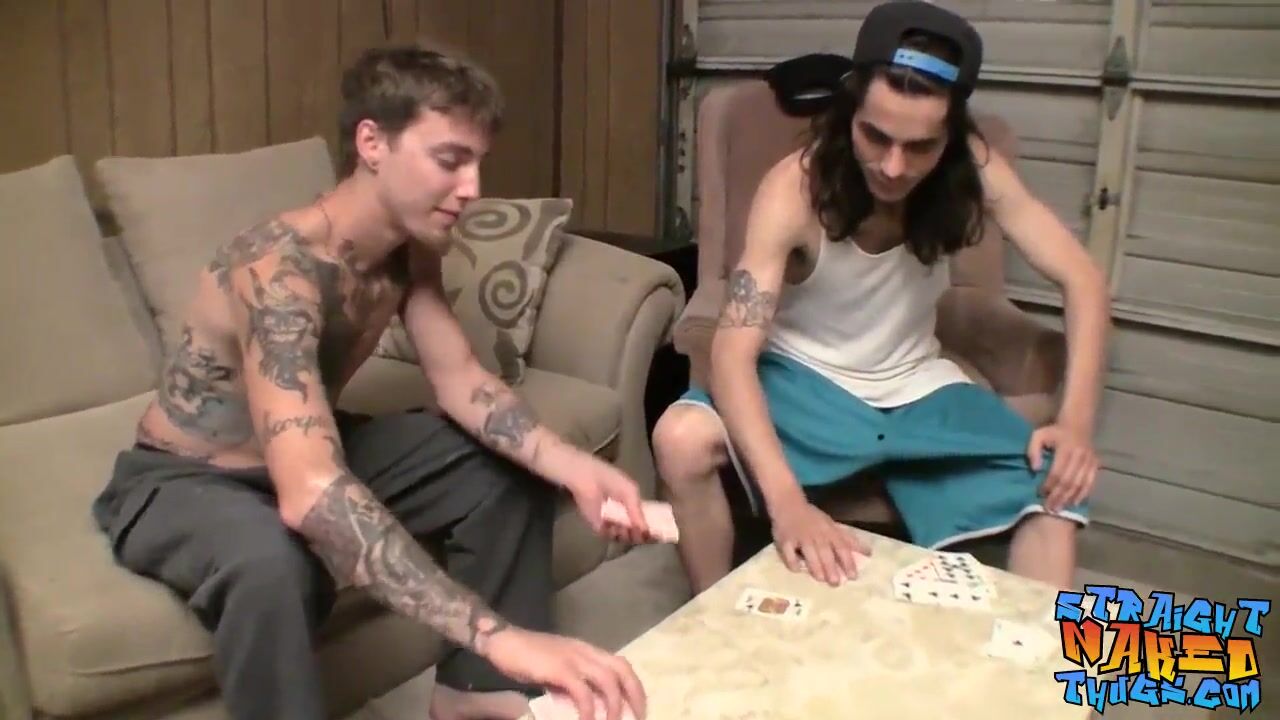 Straight thugs Blinx and Devin Reynolds are playing card and fooling around before jerking off their hairy dicks!