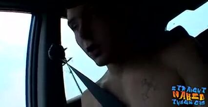 Young straight thuggish dude stroking dick publicly in car