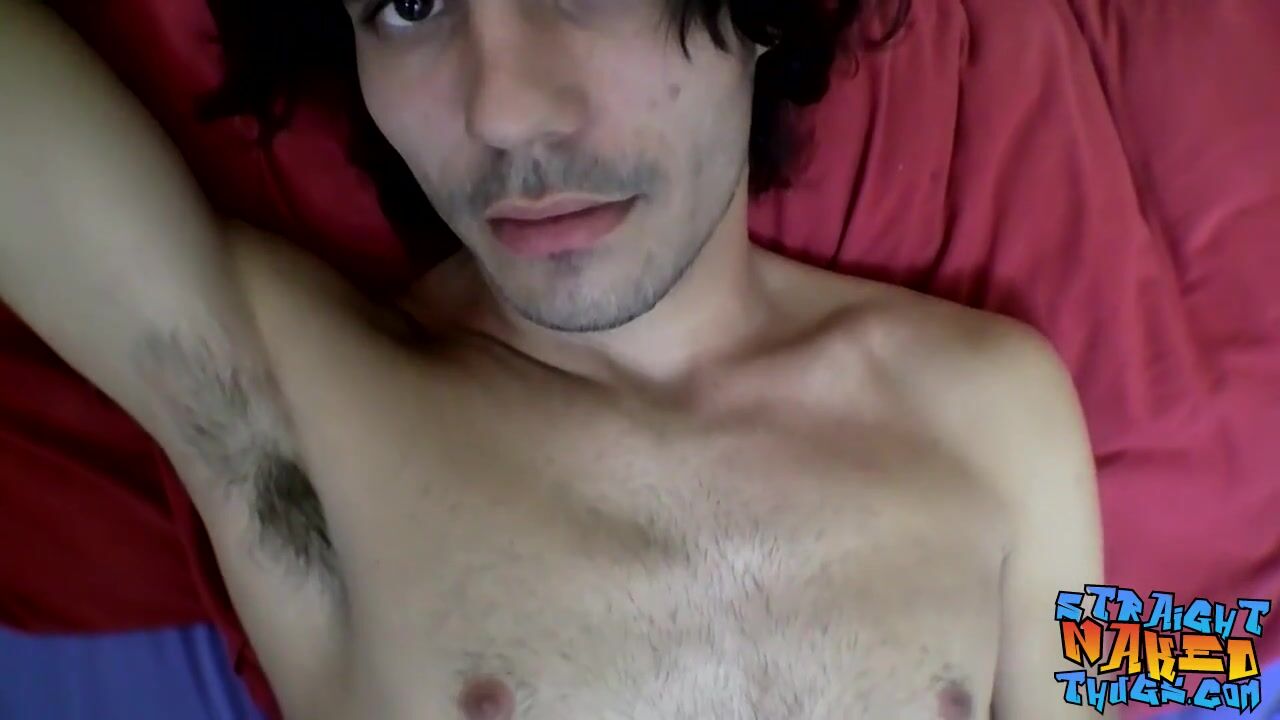 Skinny twinkie with shaggy hair masturbates his hairy dick