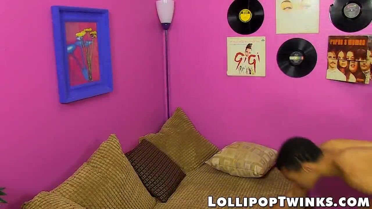 Interracial twink fuck with one dude gifting the other one a huge lollipop to seduce him into a BJ.