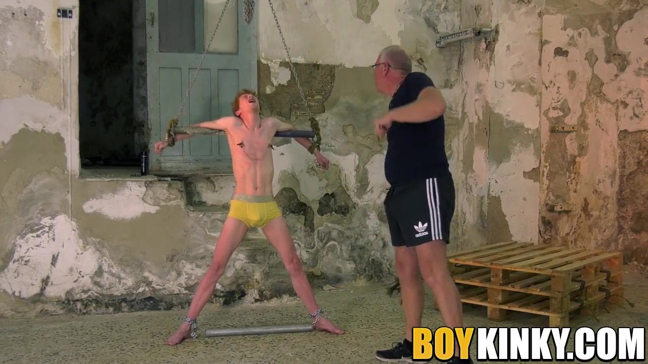 Skinny ginger boy gets his nipples teased by a horny old man who then kisses him a few times and licks his neck.