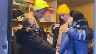 STEPFATHER CAUGHT - stepson and friend kiss passionately and then fuck juicily in the closet - 453