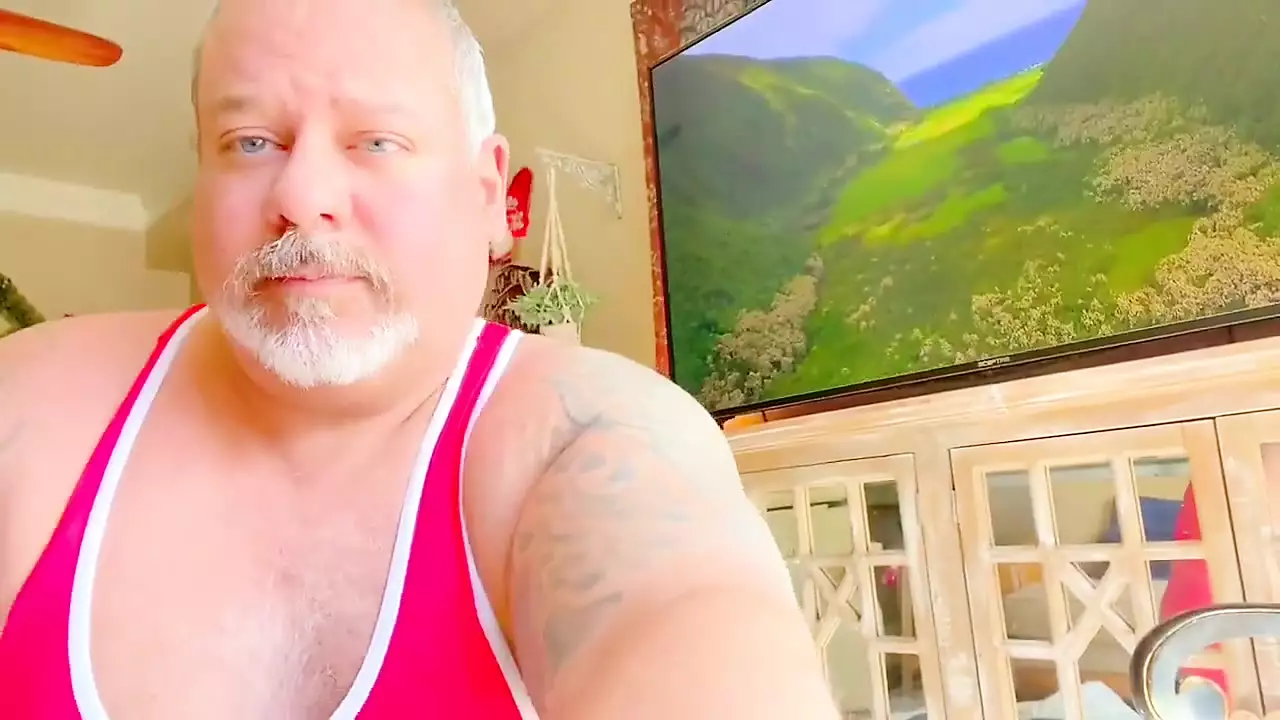 Fat Man Has a Huge Cream Pie in His Wrestling Gear and Shows His Fat Dirty Ass and Cums Hands Free