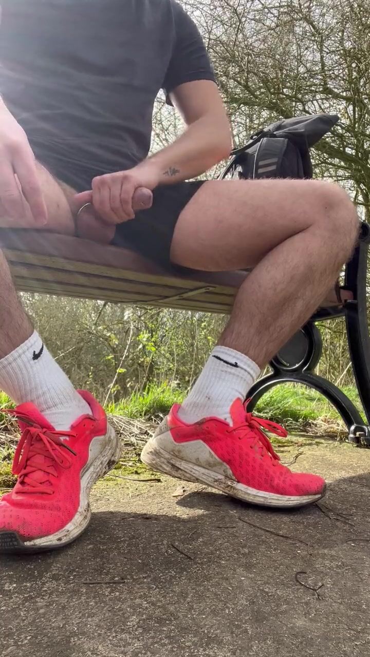 Outdoor Exhib Jerking off outside with Cockring