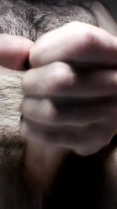 Hairy uncut guy with painted nails close-up pre-cum and cum