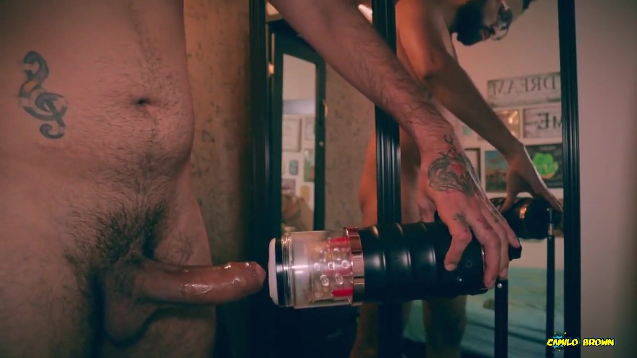 Big Uncut Cock Latino Camilo Brown Fucking Fleshlight Shooting a Big Load and Eating His Own Cum