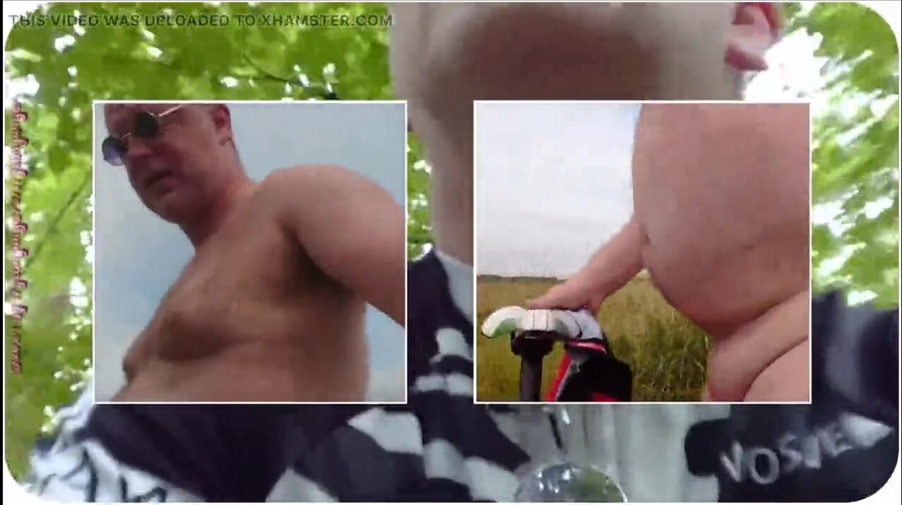 In bad weather, I like to play on my smartphone and look for special apps to put my little videos in the limelight. Now I`ve found an app - which compiles collages with photos and even with videos. Since I usually always have two cell phones in use on the bike tour - I can now try this app wonderfully. A video is playing in the background: Where I am driving through the forest with my clothes on. The other two videos - are filmed from two different perspectives and at the same time. So you always have an exciting hot view of my genital area. The little movie star: the penis and its subordinates: the scrotum. Have fun looking at it and maybe even imitating it.