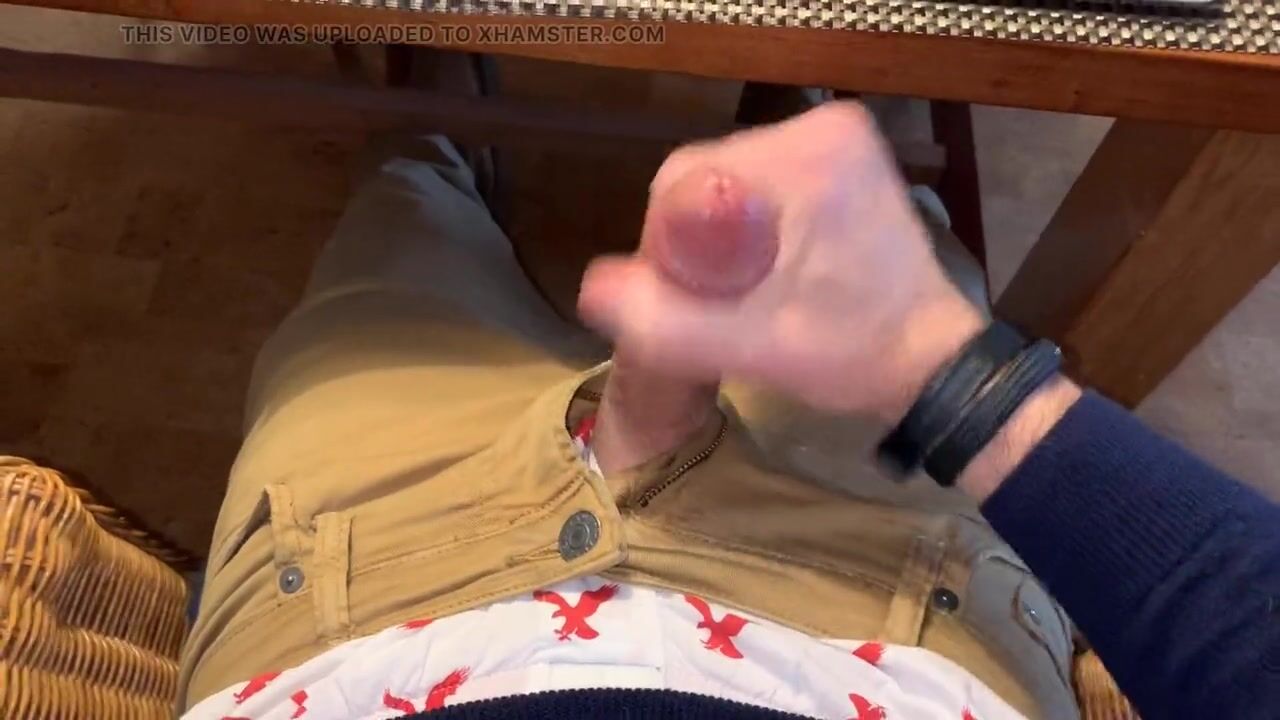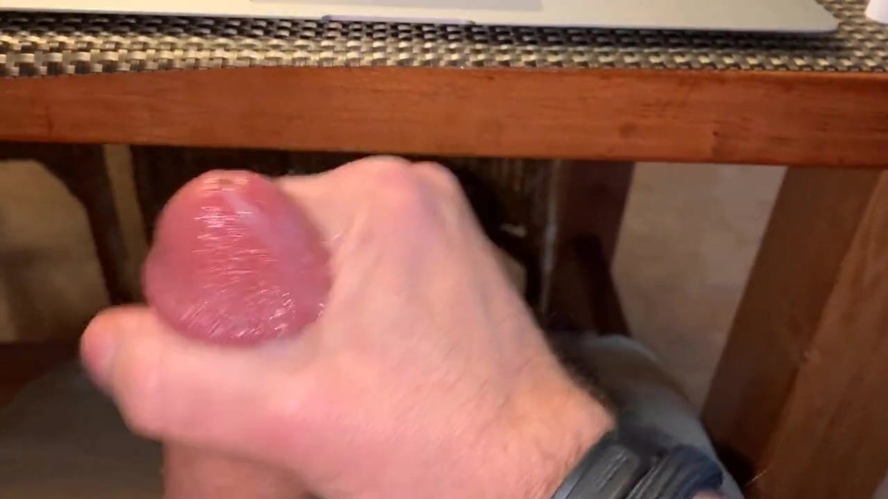 Using my pre-cum as lube, stroking my hard, wet, red, throbbing cock until I cum. Wearing my American Eagle boxers too.