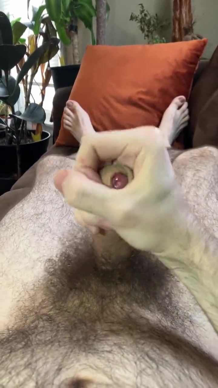 Pretty good jerk session after I took a break for a few days. Not the most flattering look at my dick but it was a very satisfying cumshot. This time you get my hairy feet and legs in the background.