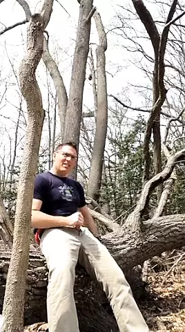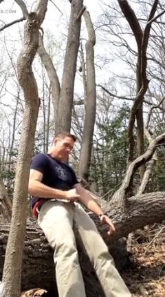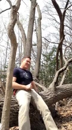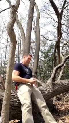 Public masturbating in the woods, jerking-off outside, jerking off on a log, stroking my cock showing AE boxers!