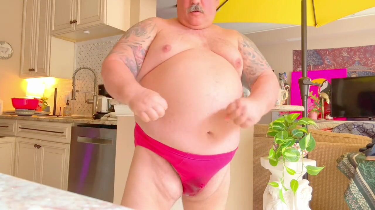 Fat bear pees in his sexy red underwear and then you go on a journey until you see a mega load shoot cum