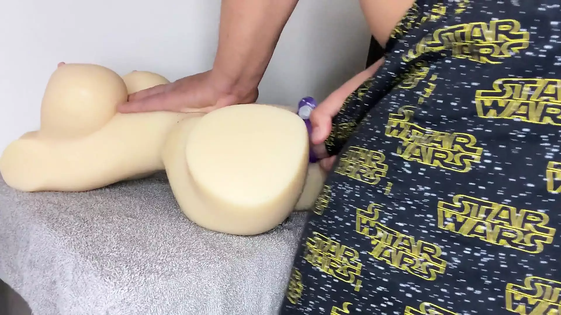 A Big Thick Dick with a Cock Ring Fucking a Butt Doll
