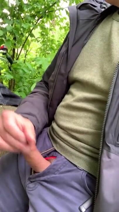 I was jerking off alone in the woods, so I thought and then noticed someone was watching me from a distance. I almost came immediately but held off to enjoy it a little longer. Pretty good cum tjenner