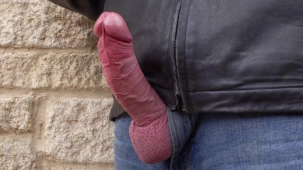 Final couple of minutes of a great outdoor masturbation session wearing leather jacket and jeans, playing with my hard cock. Dripping delicious precum, wanking, edging then giving way to a lovely cumshot.