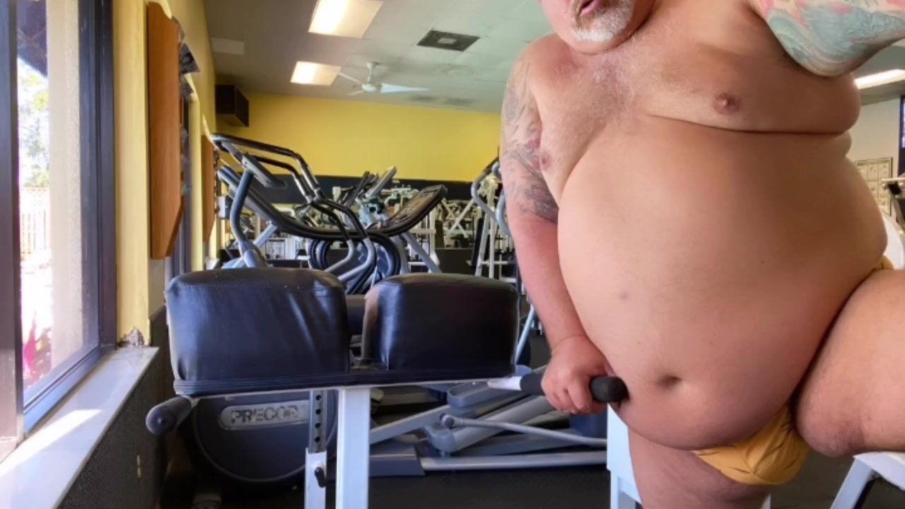 Retired wrestling muscle bull Coach blows a load training at the gym