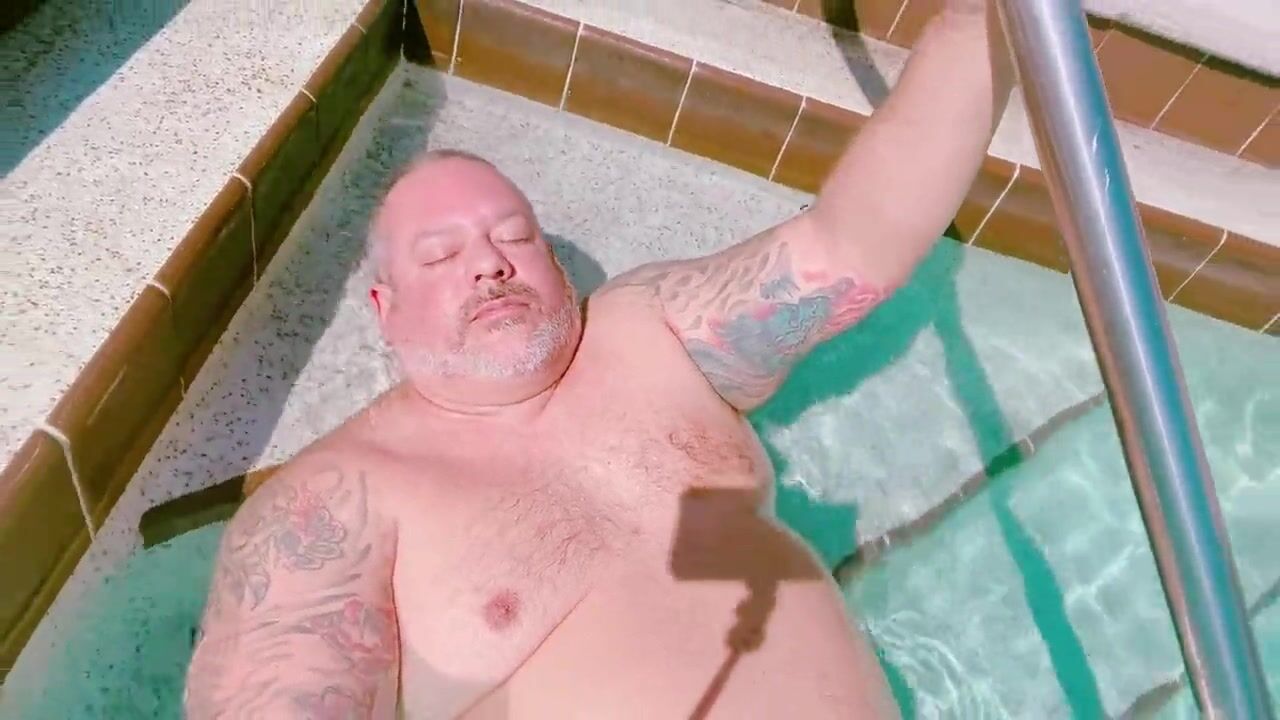 FATTEST DADDY BELLY IN A POOL ! Jacks his cock, too!