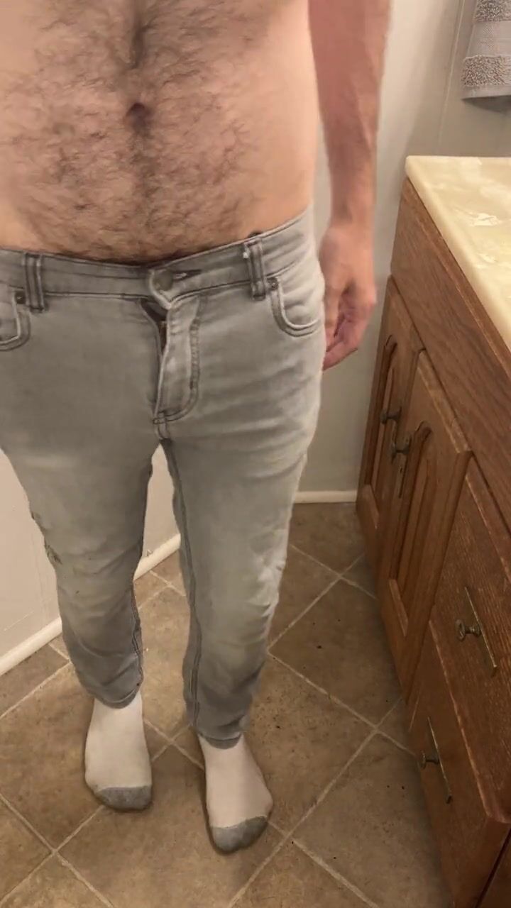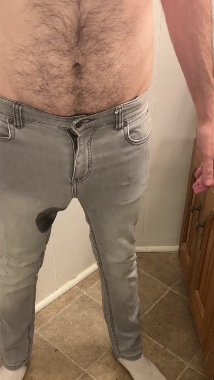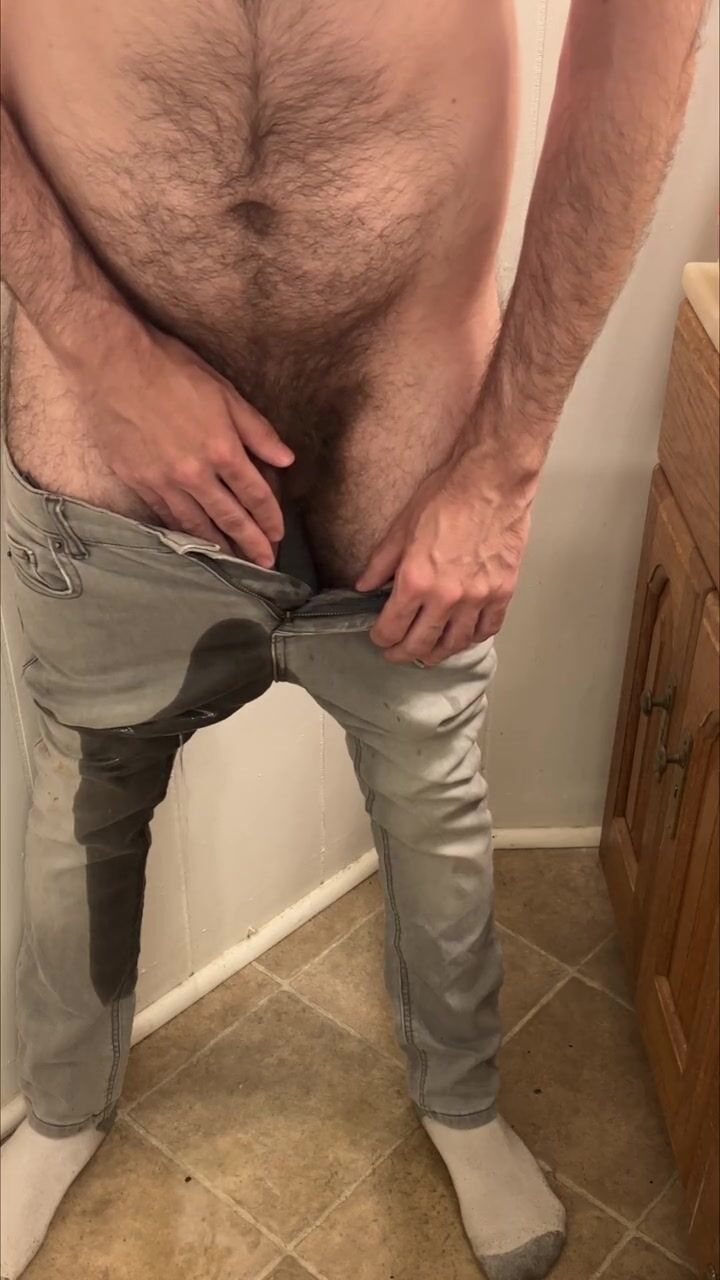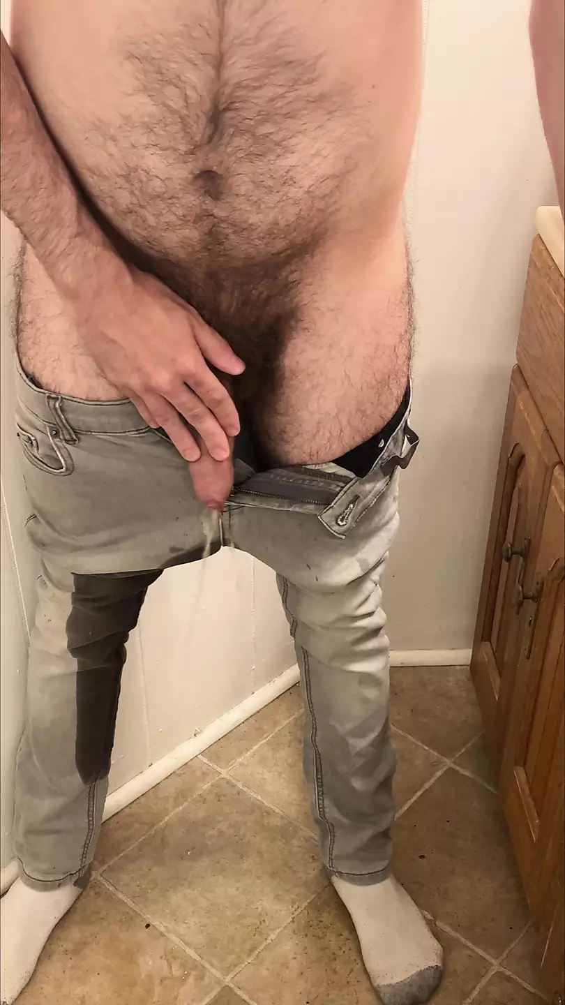 Desperation jeans wetting with Charles Dickenballs - pissing myself, then spraying pee all over the floor with a hard-on