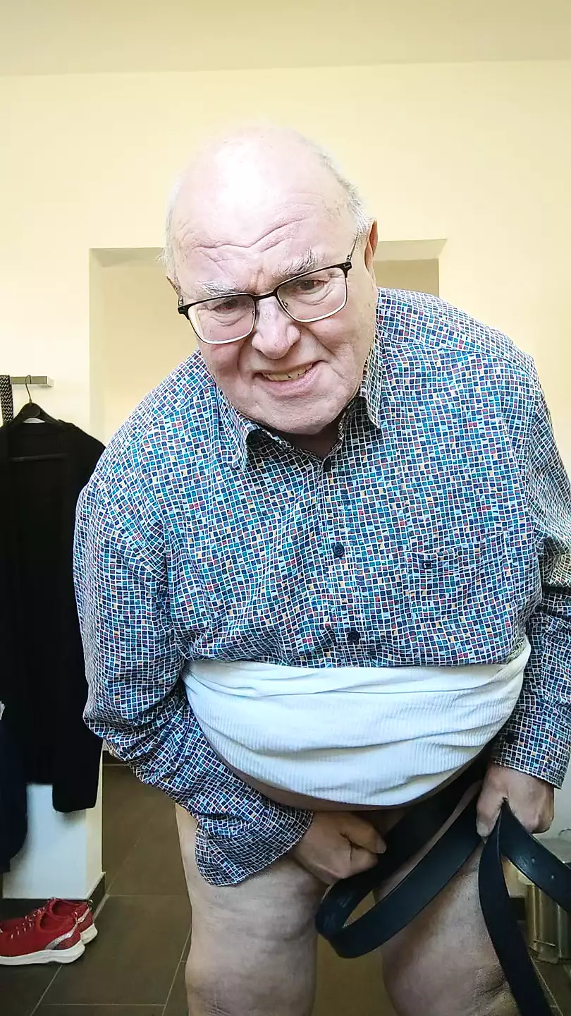 Wanted to change trousers, with the belt in my hand i had the urge to feel some pain. Therefore i had to beat my fat ass and cock!