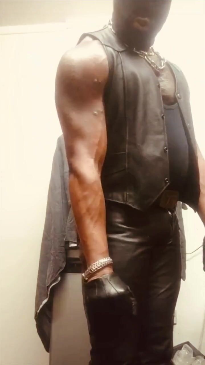 Preview Teaser solo muscle Leather fetish Dad smoke, flex & nipple play clips