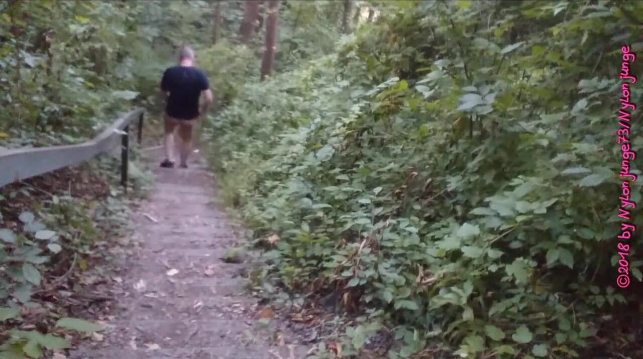 Morning exercise in the forest - climbing stairs to my wooded mountain. I seem to be the only one on the way - so let out the pants and tail dangle out. Since it is still a bit fresh outside - I'm carrying a minipimmel with me. But it rocks and wobbles so wonderful when you walk up and down the stairs. Also for fans of my butt the sight is sexy. I'll go further up and see