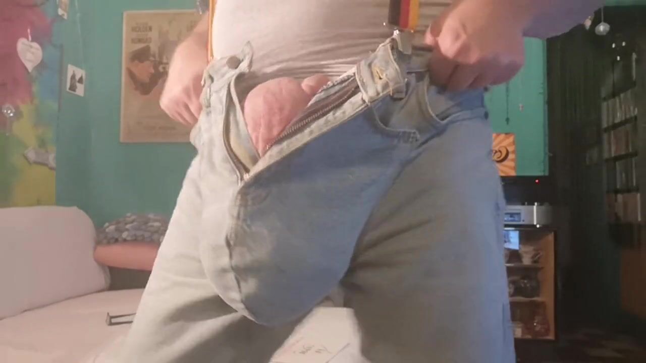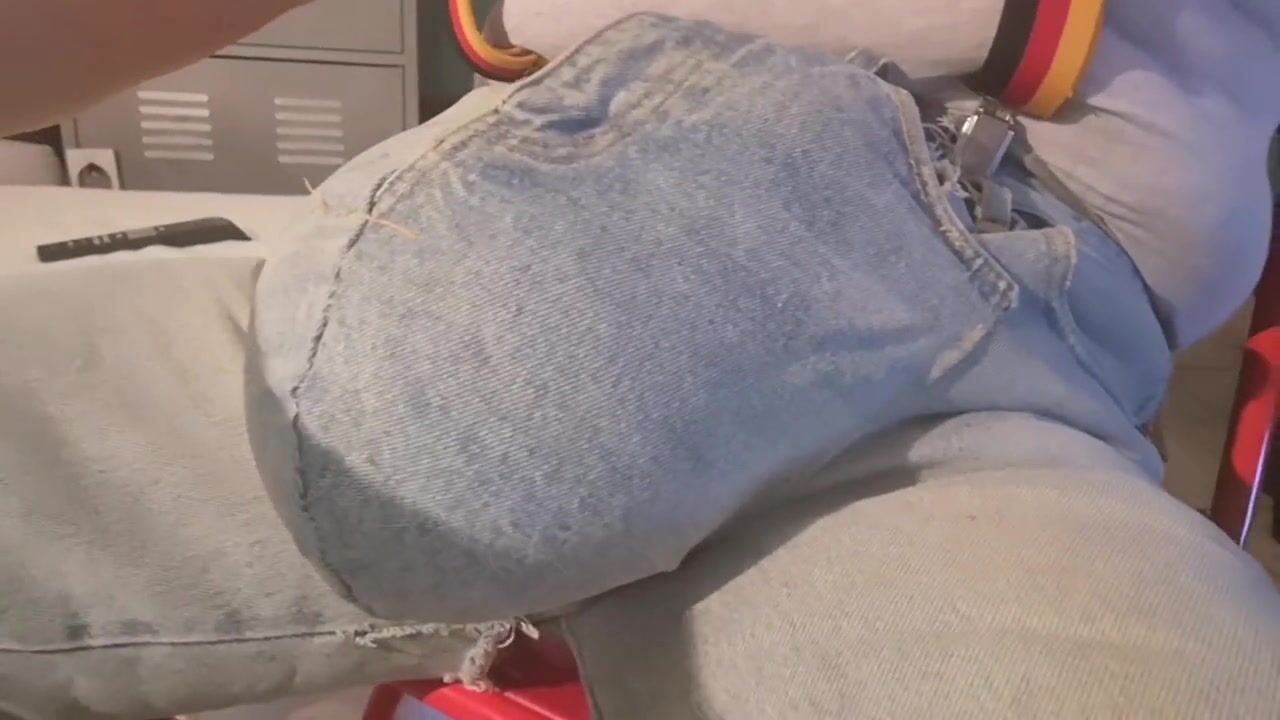 My silicone filled genitals in obscene big bulging jeans, the jeans was handmade by philmore