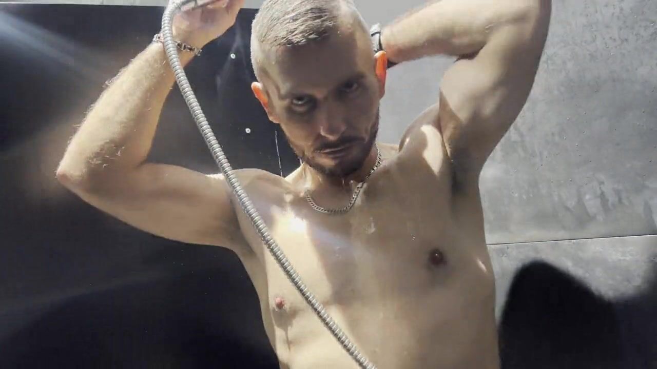 After some activities in public exposing my locked dick and ass, then going to the gym and after the training play with my male cunt in the locker room and styled as a businessman he is riding the dildo outdoor in public and cumming outside