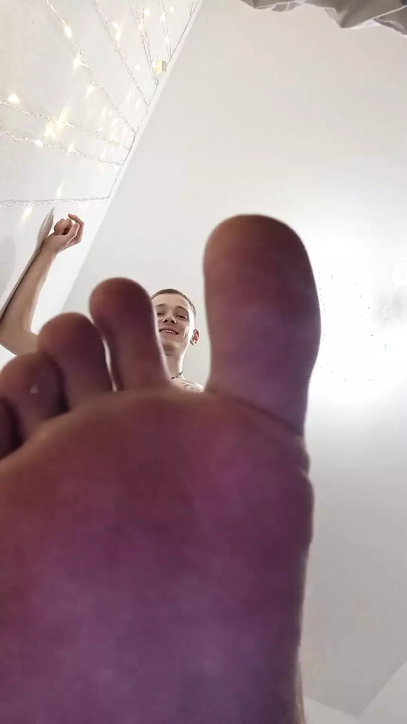 Here I humiliate a slave who considers me a god and worships my feet. I trample the slave and tell him to beg that he wants to kiss and lick my feet