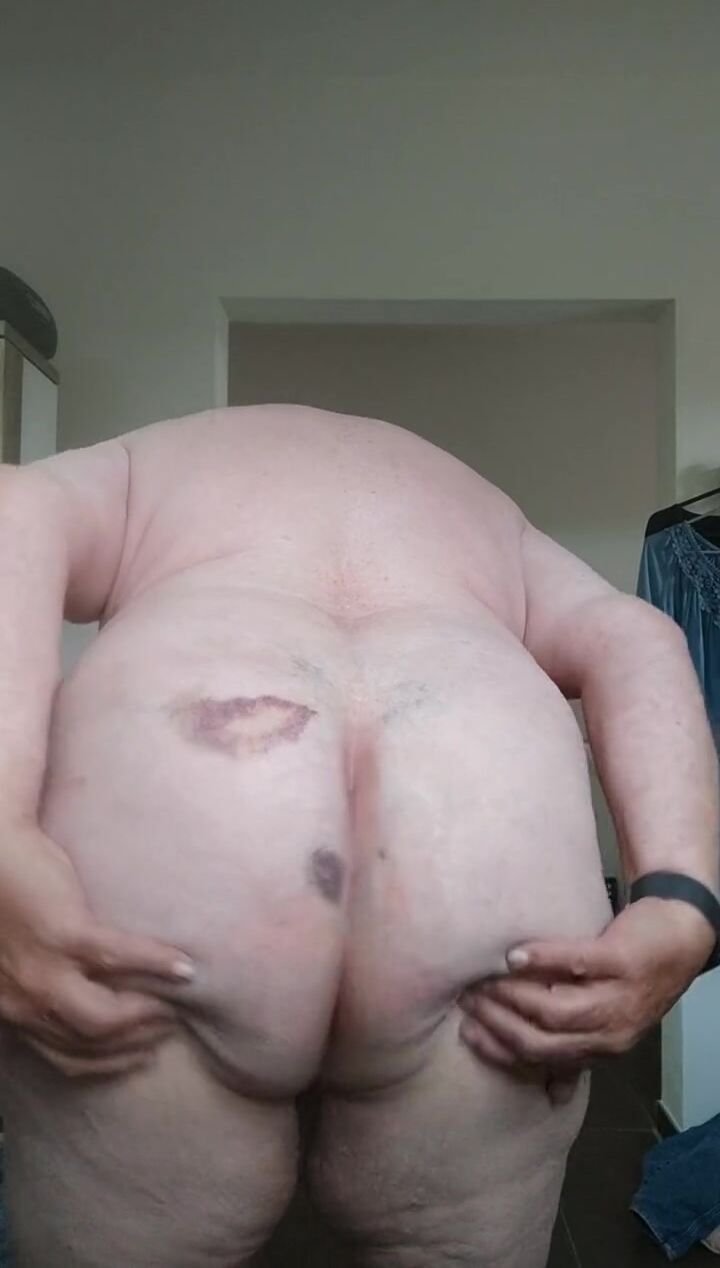Looking at my naked ass and beating it with my beloved lrather belt for some new pain