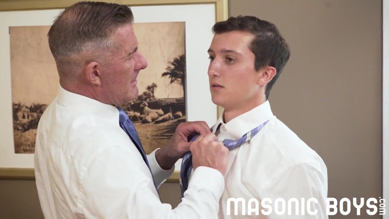 Sexy hung suited DILF takes smooth boys cherry bareback