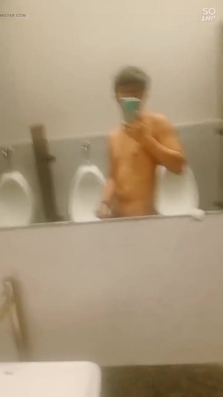 Young Asia Teen Guy Wanking on a Public Mcdonnalds Toilet