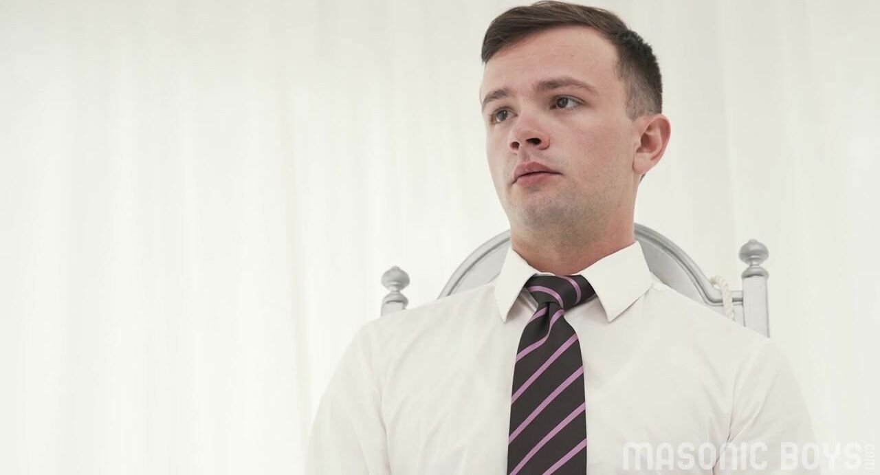 Cute, innocent, smooth boy tied up by hot, suited DILF