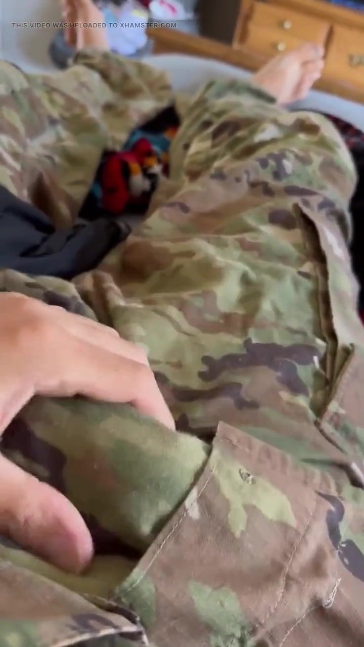 Just an Army Soldier Rubbing His Cock Through His Ocps Military Uniform