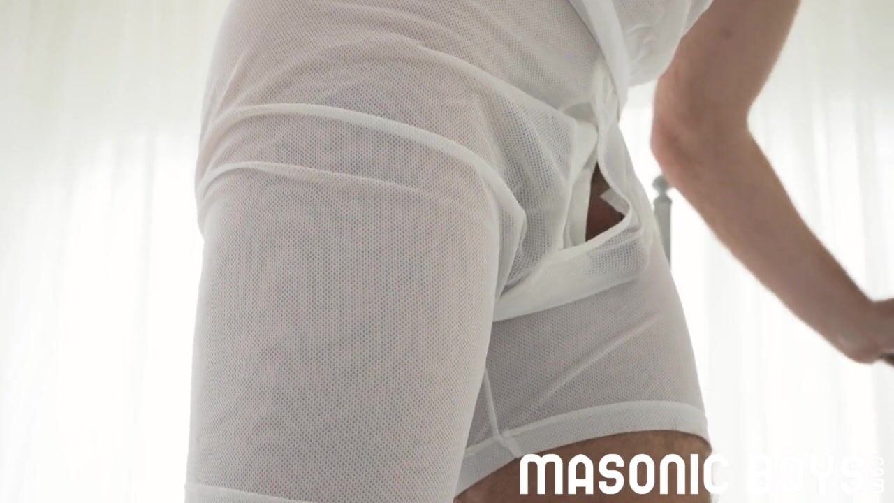 Cute skinny twink is seduced and toyed by suited DILF on a chair