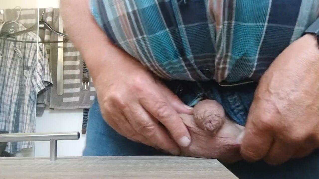 Pulling cock, splashing my balls on a table, beating them with my fist
