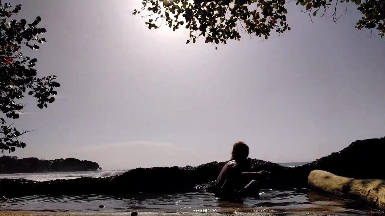 Handsome guy enjoys in the sea on a non-nudist beach daring and undressing